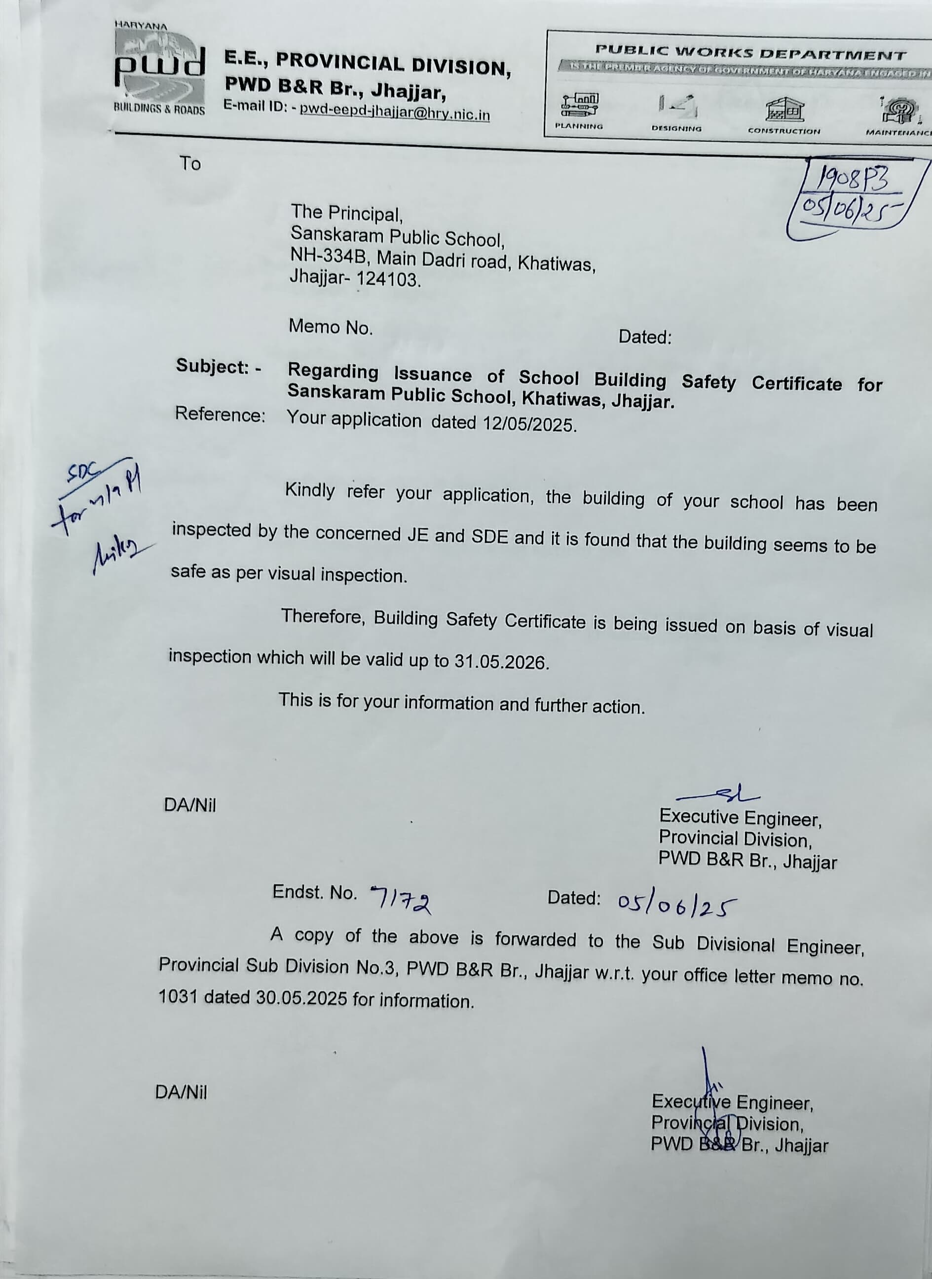 COPY OF VALID BUILDING SAFETY CERTIFICATE AS PER NATIONAL BUILDING CODE |